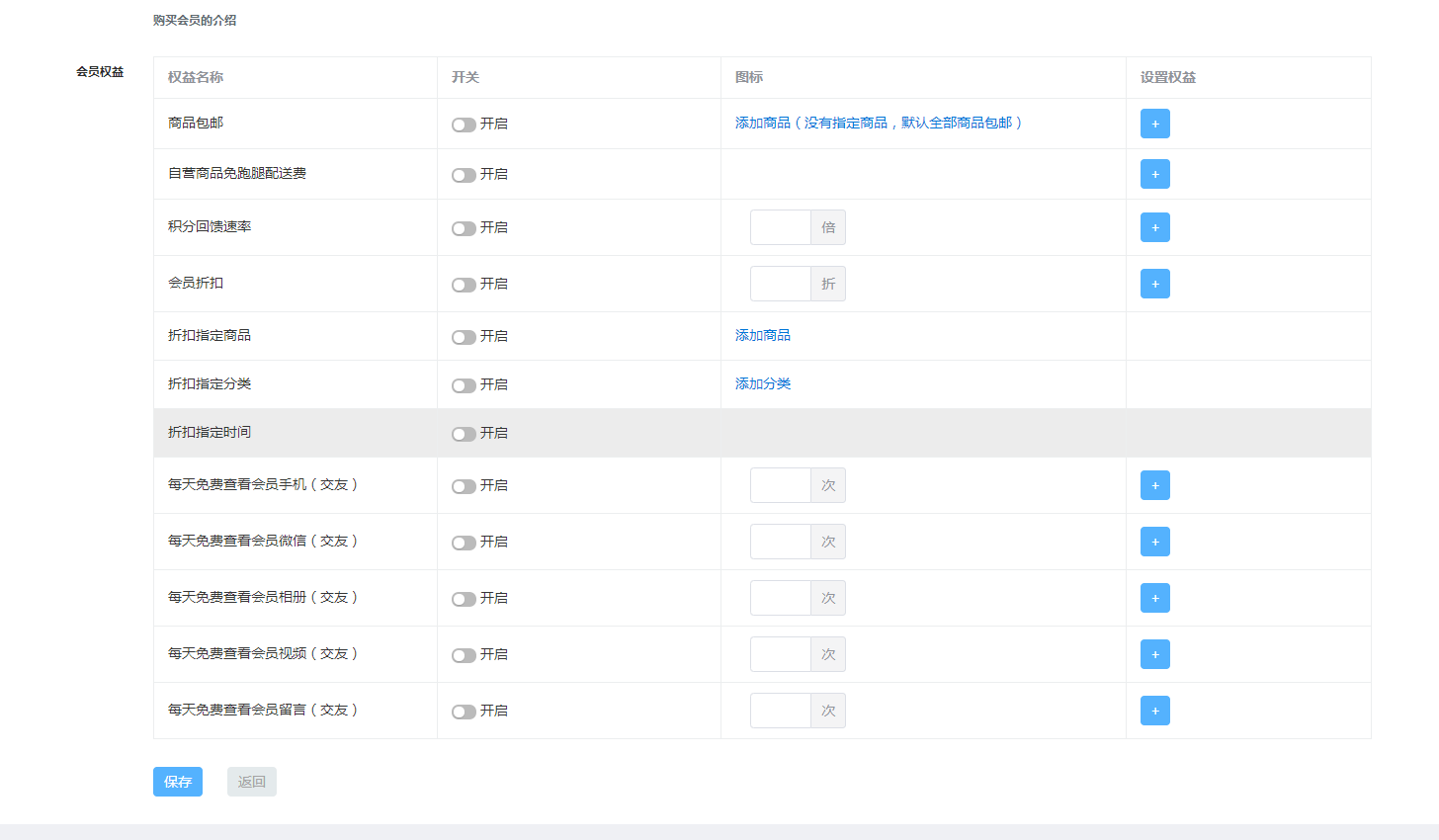 设置会员权益: