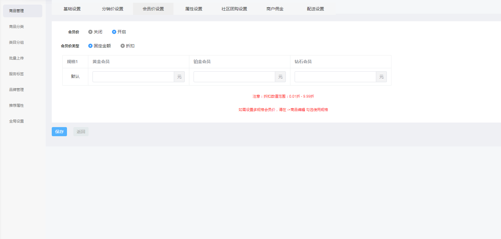 ## 功能设置路径:后台—商品—会员价设置