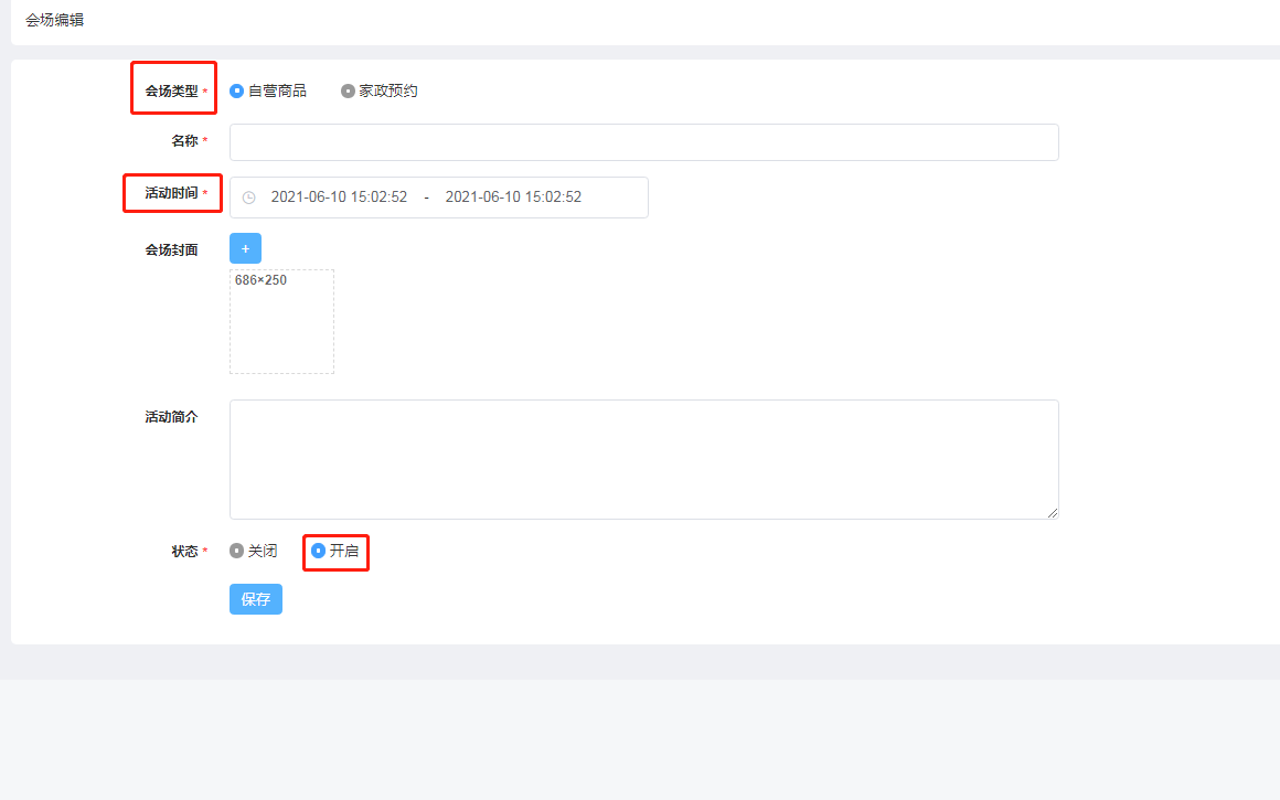 设置完成秒杀商品之后,设置秒杀会场