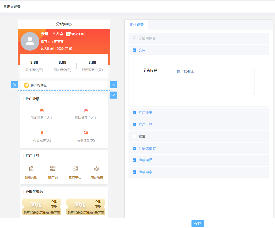 ## 功能设置路径:后台—分销—分销设置—分销页面自定义设置