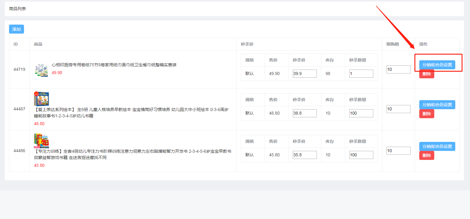 * 可设置秒杀商品会员价(如不开启即不用设置)