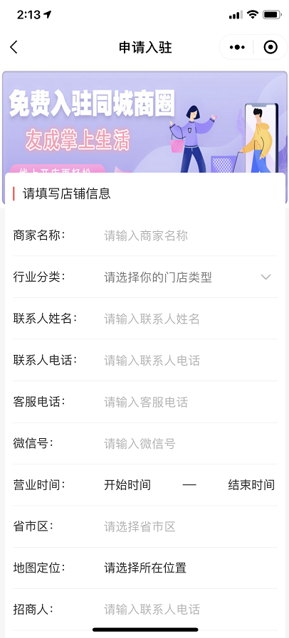 ### 3\. 入驻公告图:用户点击商户中心入驻页面显示的入驻公告图