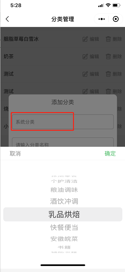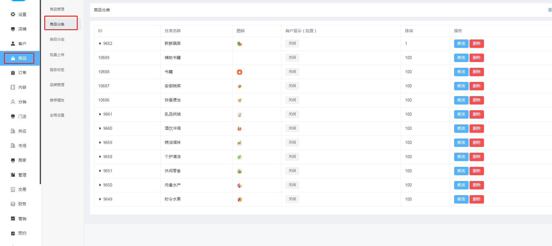 商户要发布上架商品,需要平台先建立系统分类;供商家添加分类创建选择