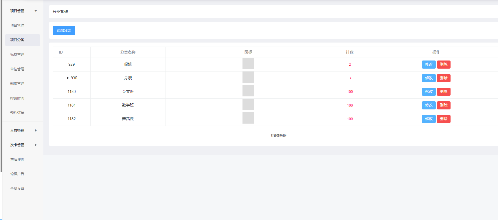 如:商户使用的是家政模板,要在这边【预约】—【项目管理】—【预约项目】