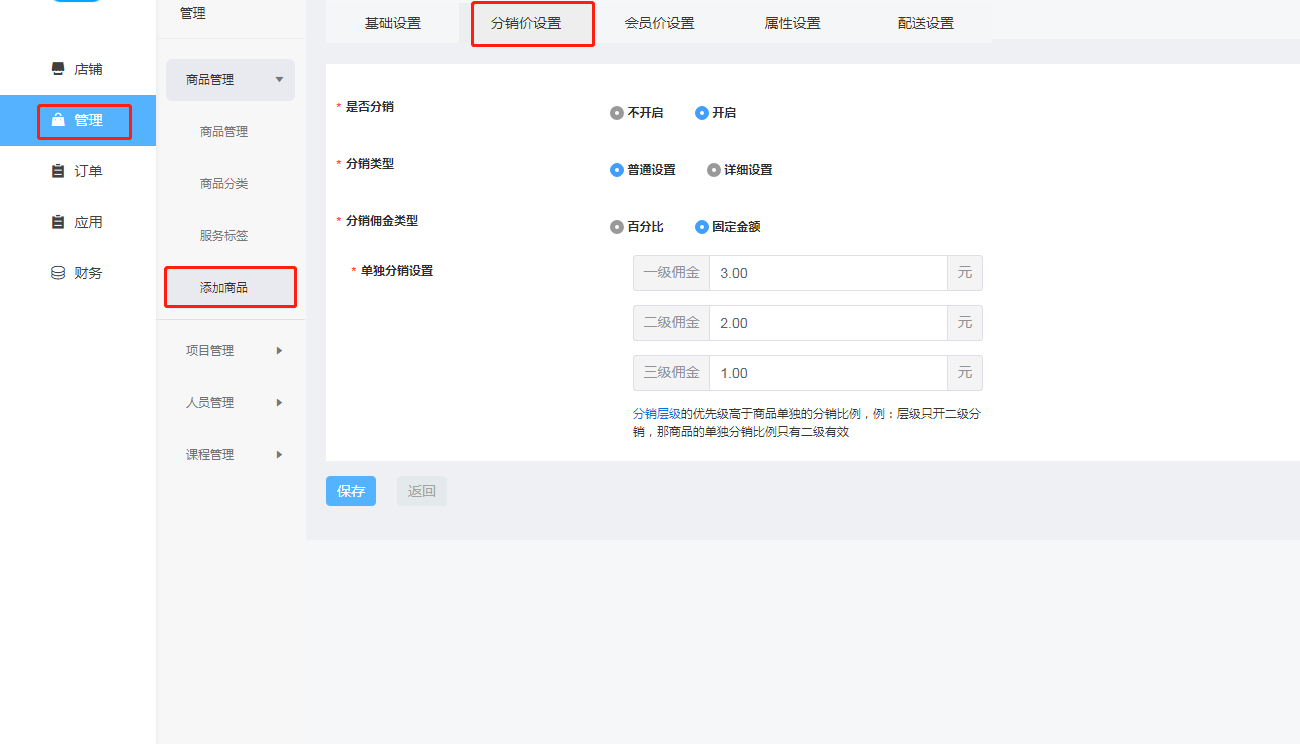商家开启分销商之后,单独设置商品分销(商家商品不按照平台等级来,需要单独在商品详情设置商品分销价)