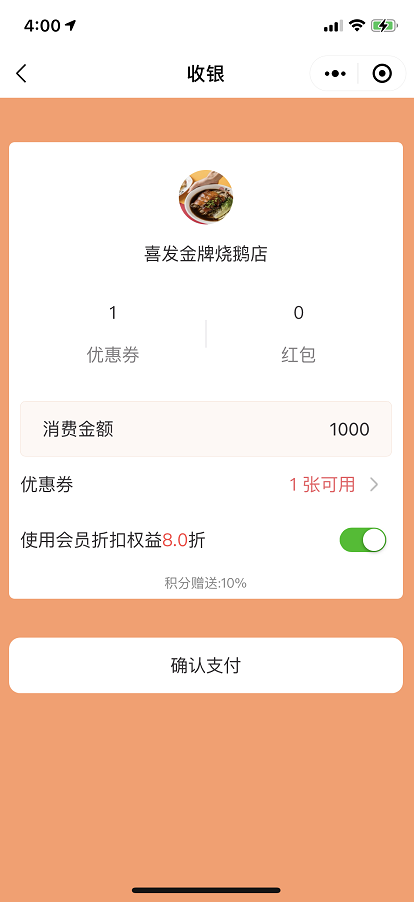 该功能是结合会员等级卡进行使用,购买会员卡享受商家买单折扣权益;