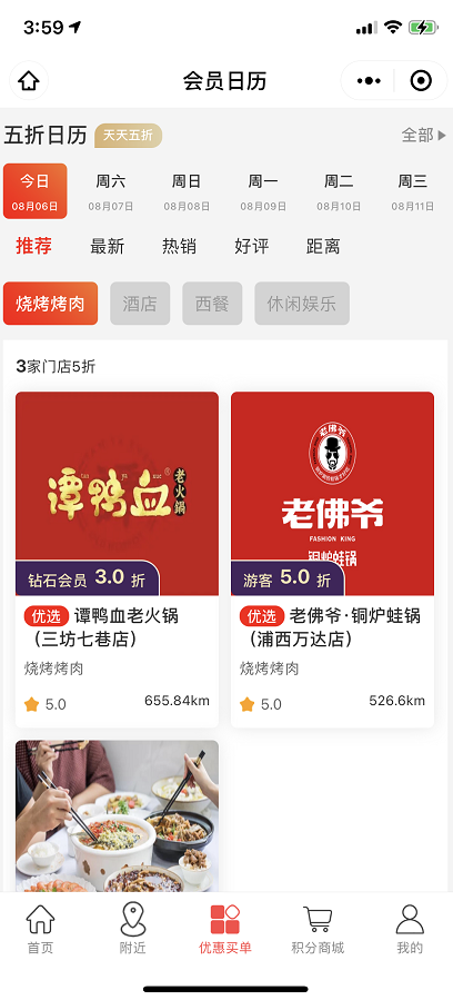 设置商家折扣的日期和消费次数限制, 达到级别的会员在该日期到商家店铺消费享受折扣,通过系统的买单功能给商家付款,系统自动打折