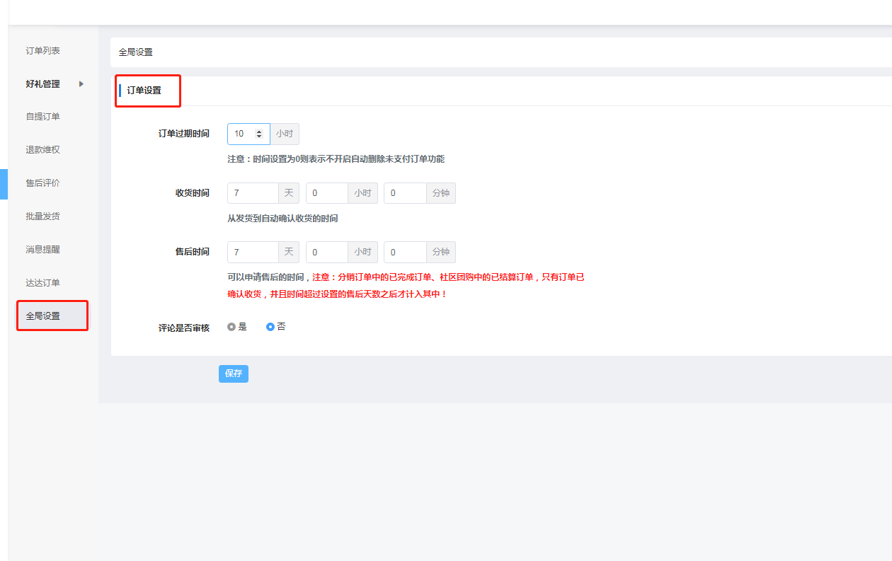 - 同城-全局设置