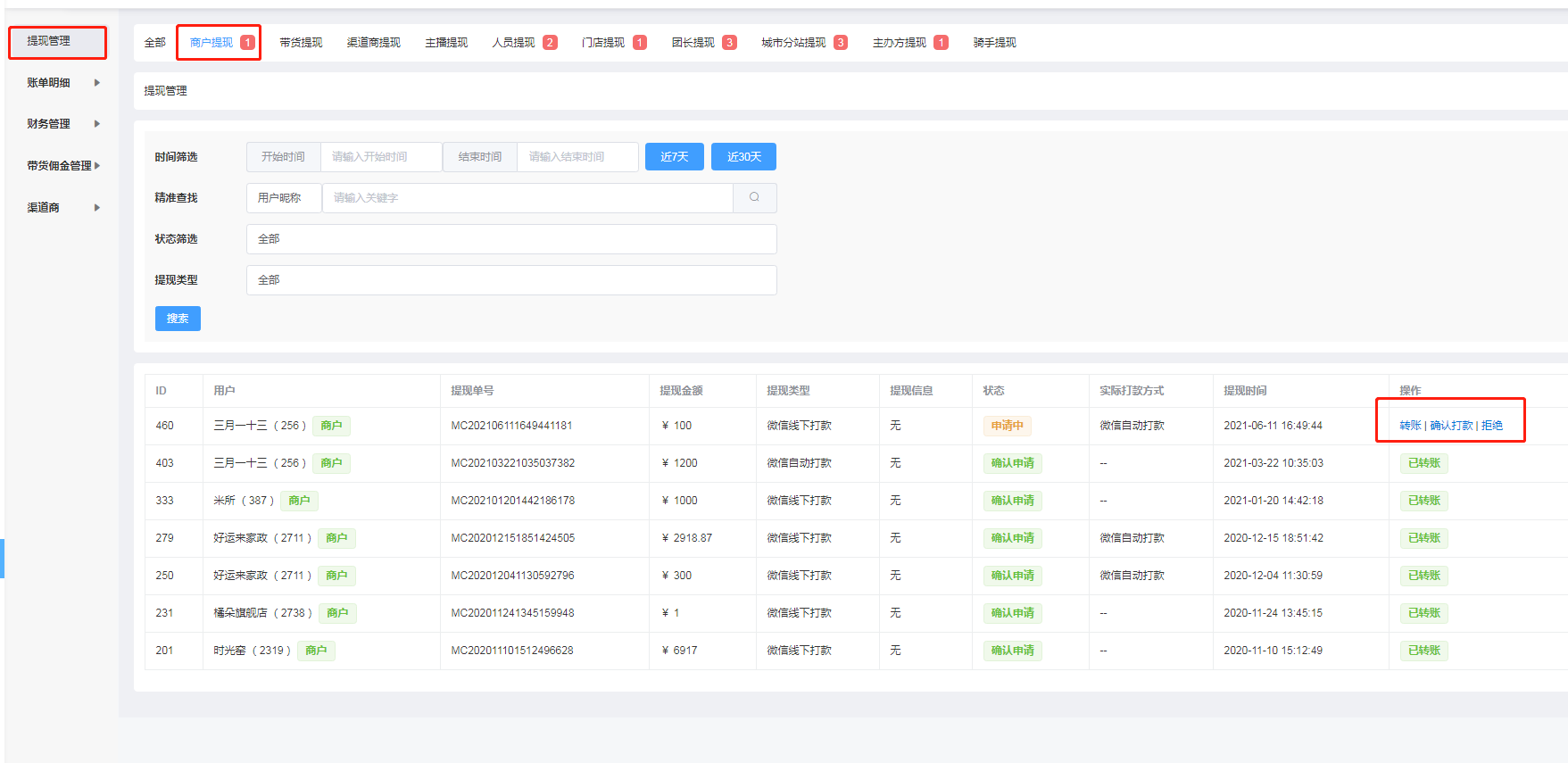6、平台审核提现,确认打款
