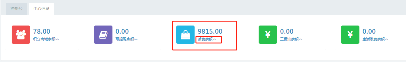 #### 控制台→中心信息→可查询话费余额