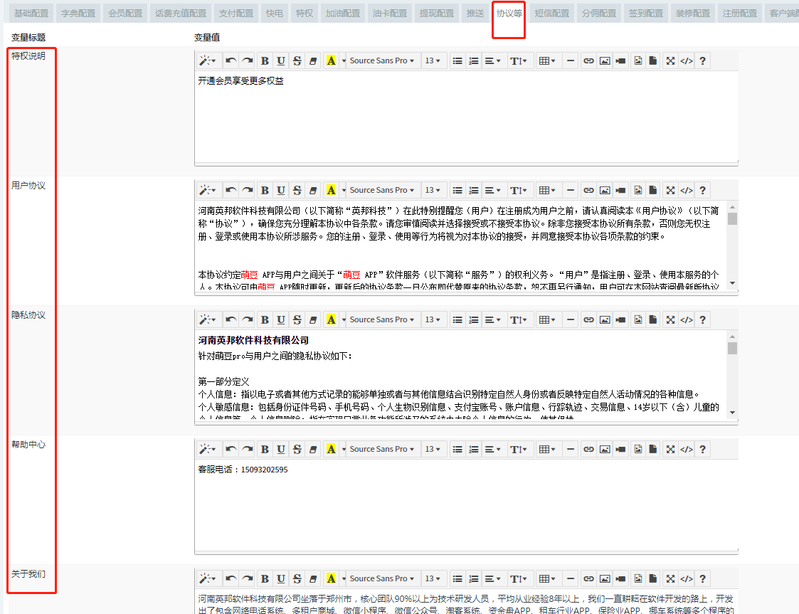 # **5.协议**可自行修改软件内协议 和说明
