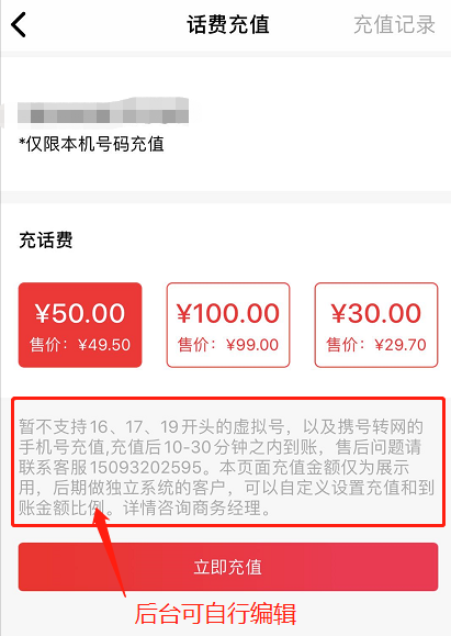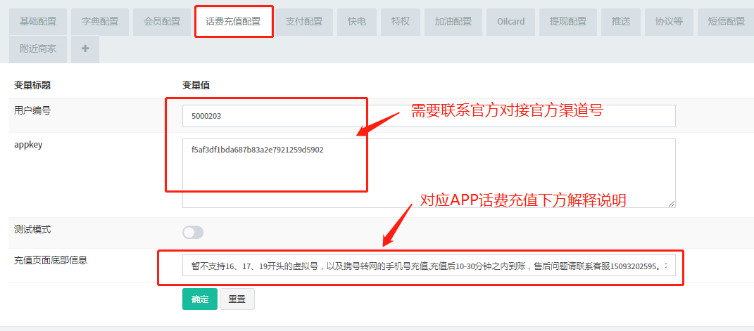 ## **2、话费充值配置**