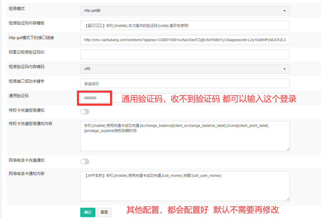 # **6、短信配置**
