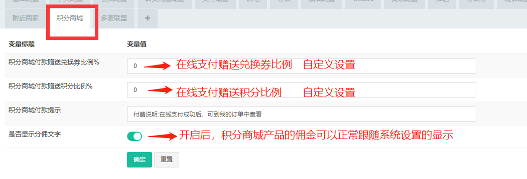 - 用户、商家、代理人的佣金分润设置