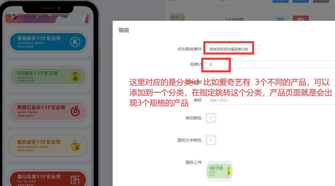 #### 这个模块在自定义装修里就跳转***视频充值品牌分类***