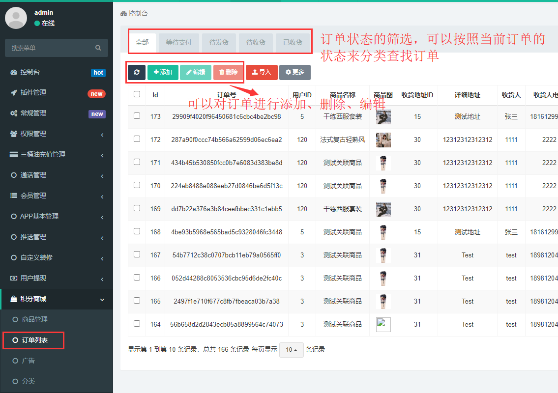 ## 同上也可以对订单进行添加、编辑、删除等操作