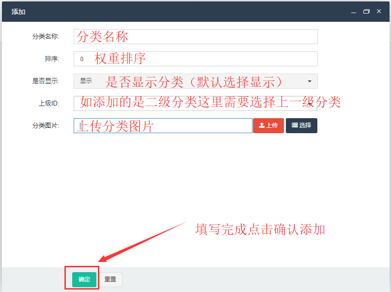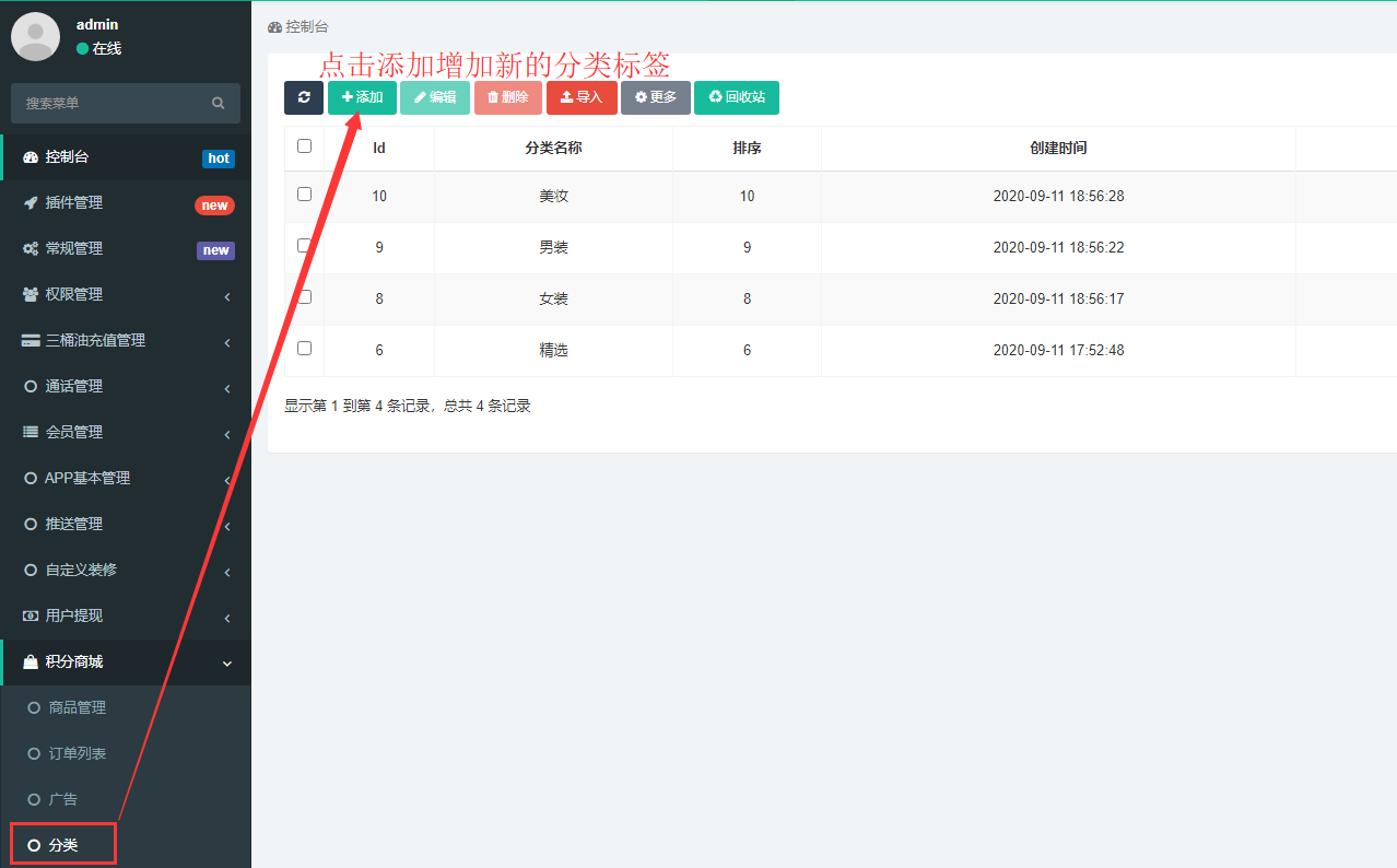 #### 分类为商品分类标签管理,可以进行添加、删除、编辑等操作: