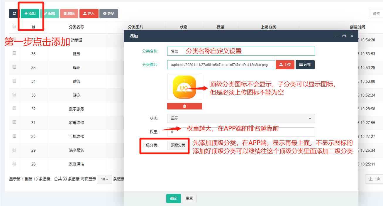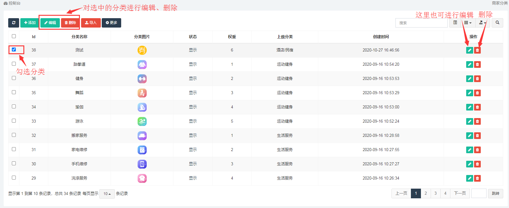 #### 商家分类:分类为店铺分类管理,可以进行添加、删除、编辑等操作: