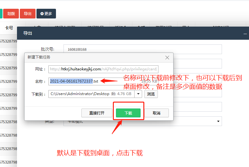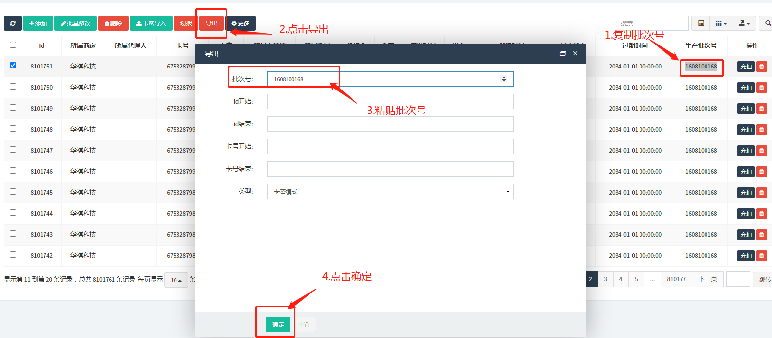 #### 生成后复制批次号点导出