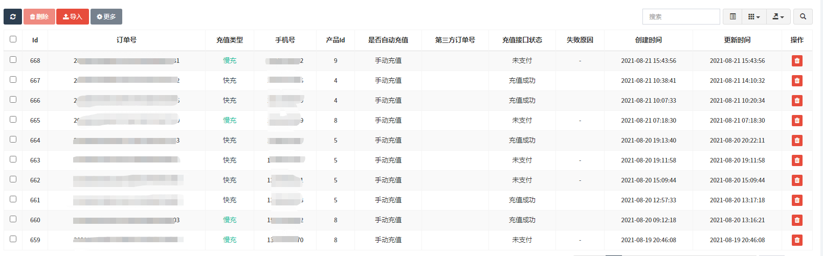 #### 可以看到用户的充值状态、充值类型以及创建此订单的时间