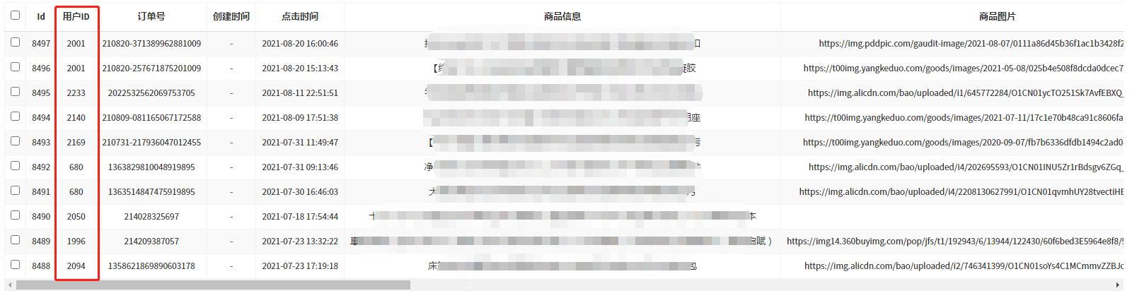 用户在软件内的淘客订单记录,可以通过用户ID查询具体用户的订单