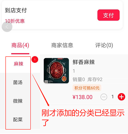 ## 新添加的分类、商品已经展示在APP端了: