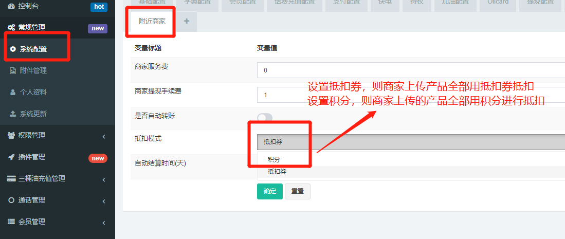 ## 总系统设置 抵扣券抵扣 或者是积分抵扣