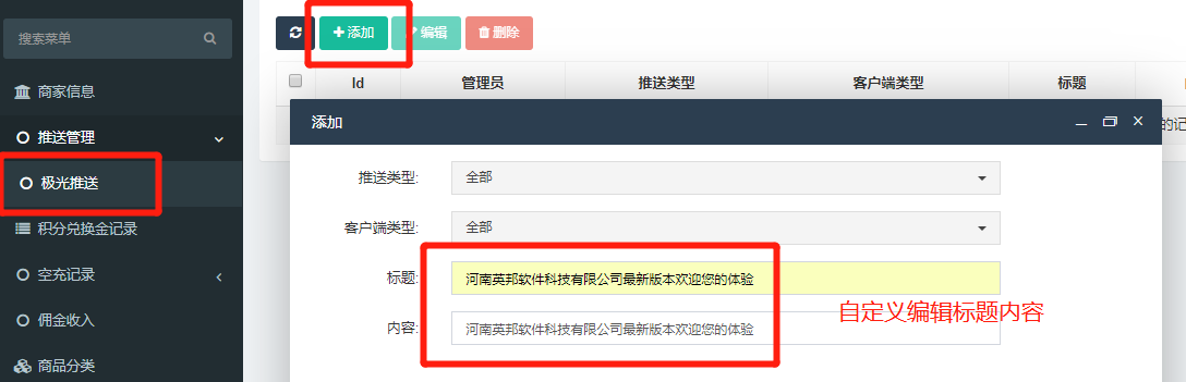 ## 推送管理,添加内容,