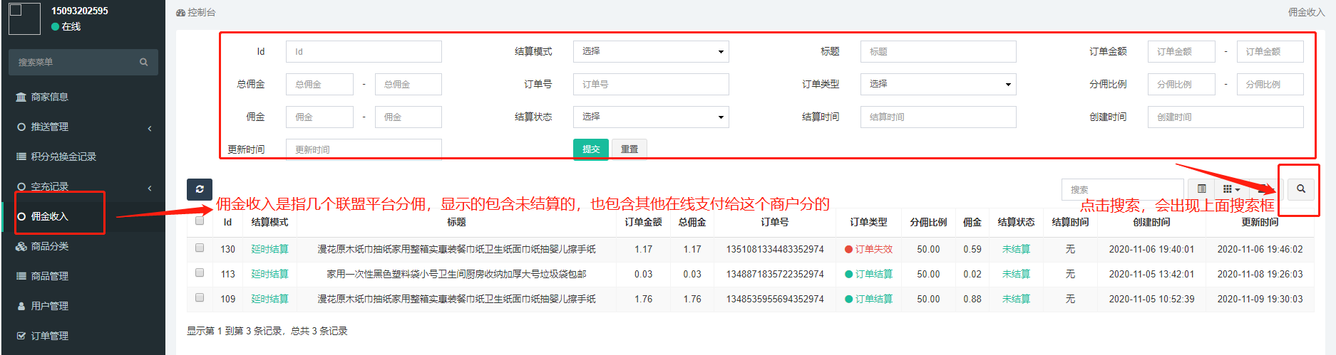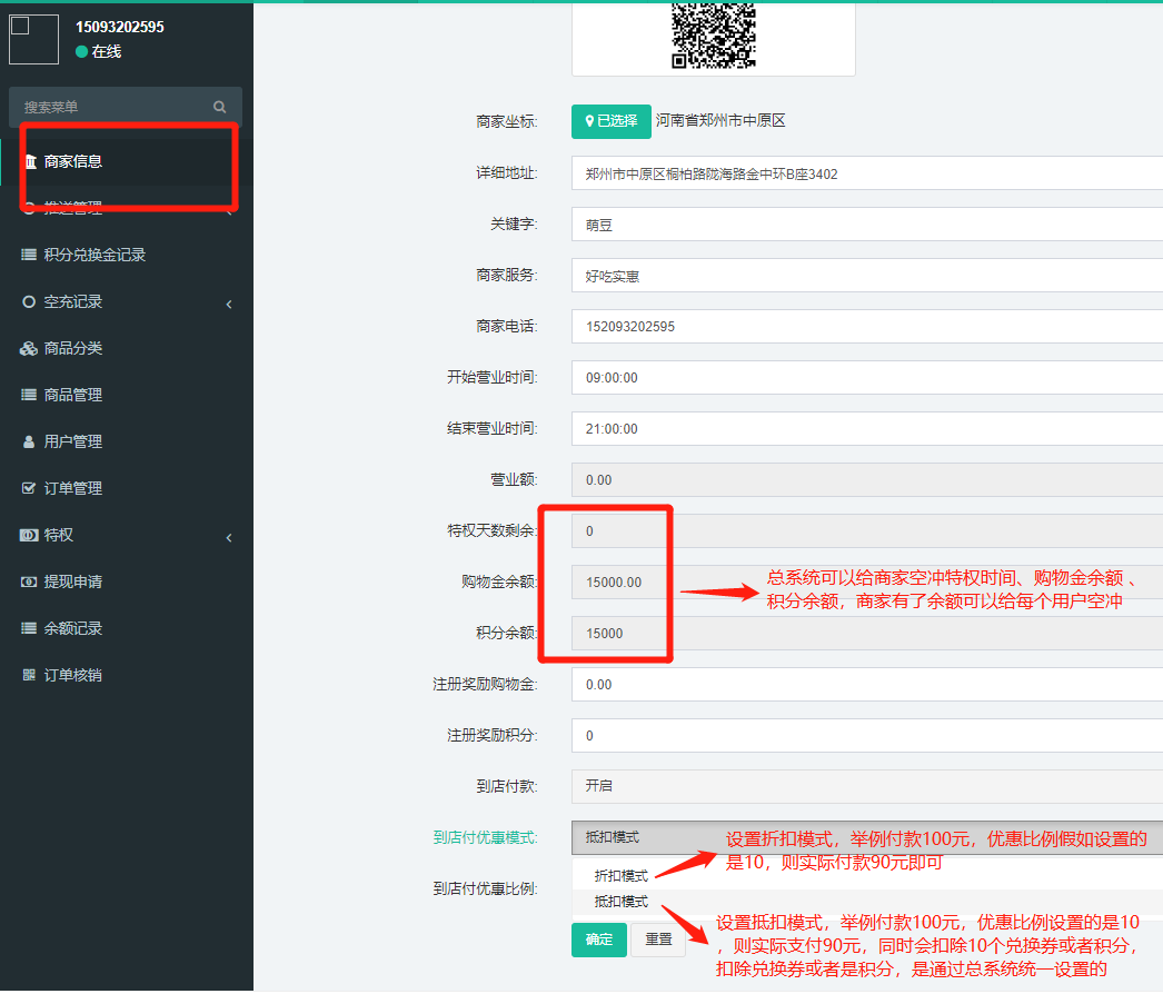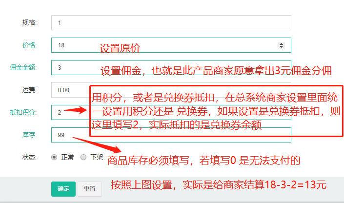 - 用户、商家、代理人的佣金分润设置