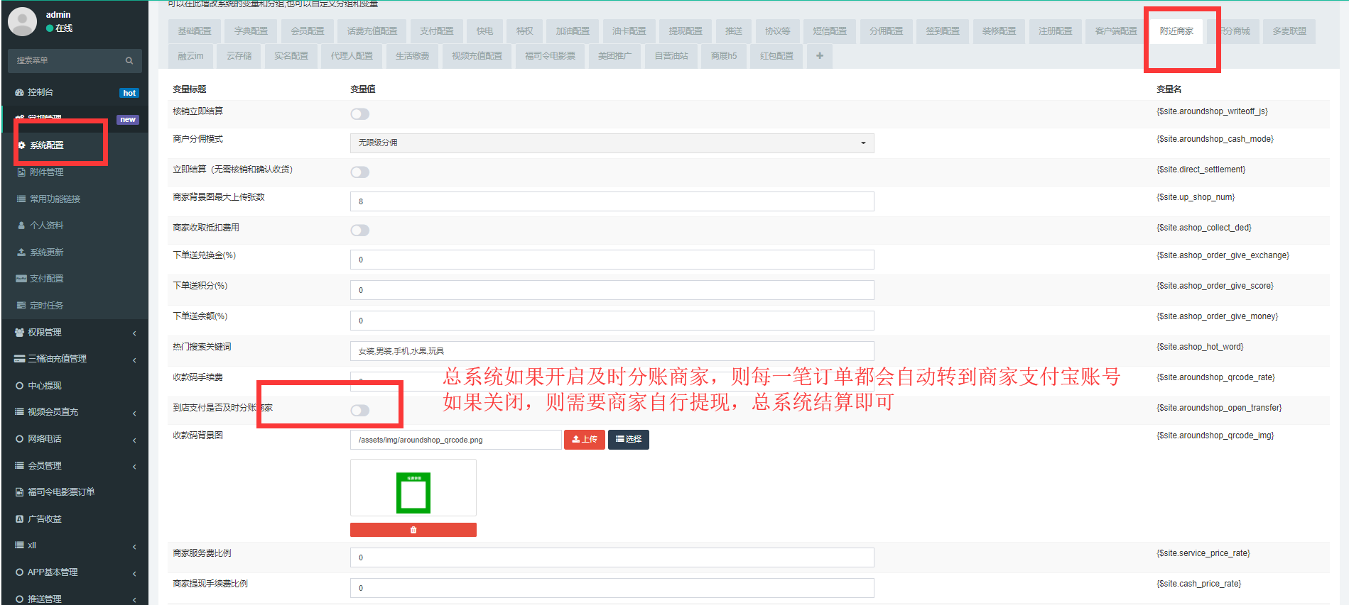 1.单独修改附近商家收款码手续费 如果为0 使用总控制的费率