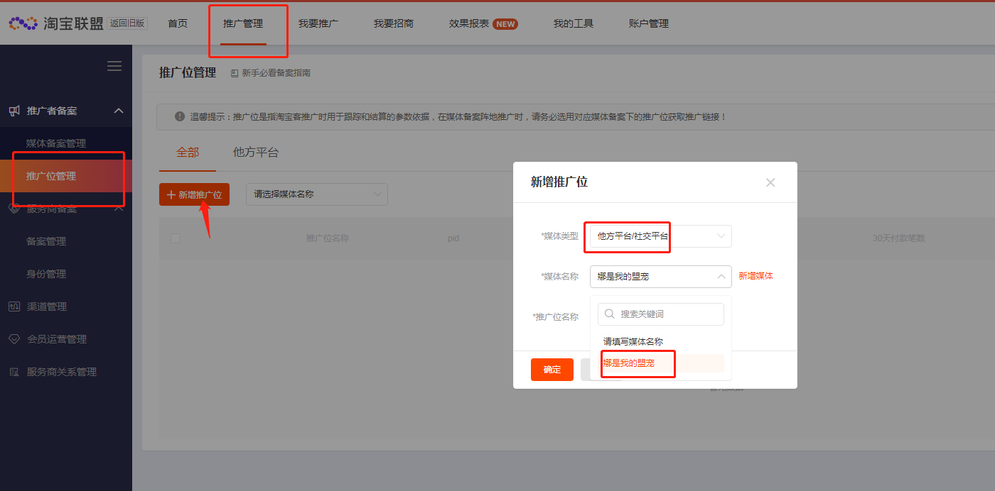 # 若没有推广位 可以先创建推广位 也可以公用一个推广位,一对一对应 可以看到每个推广位的详细收入,选择一个是综合全部的收入