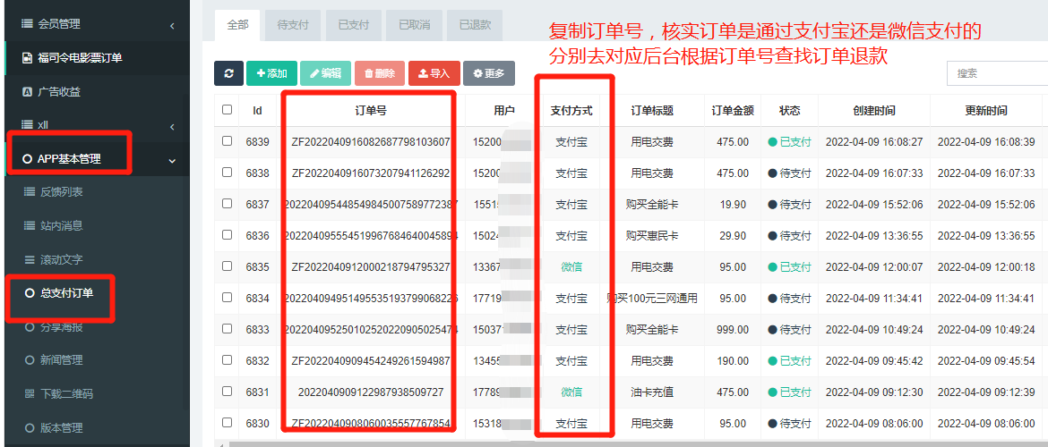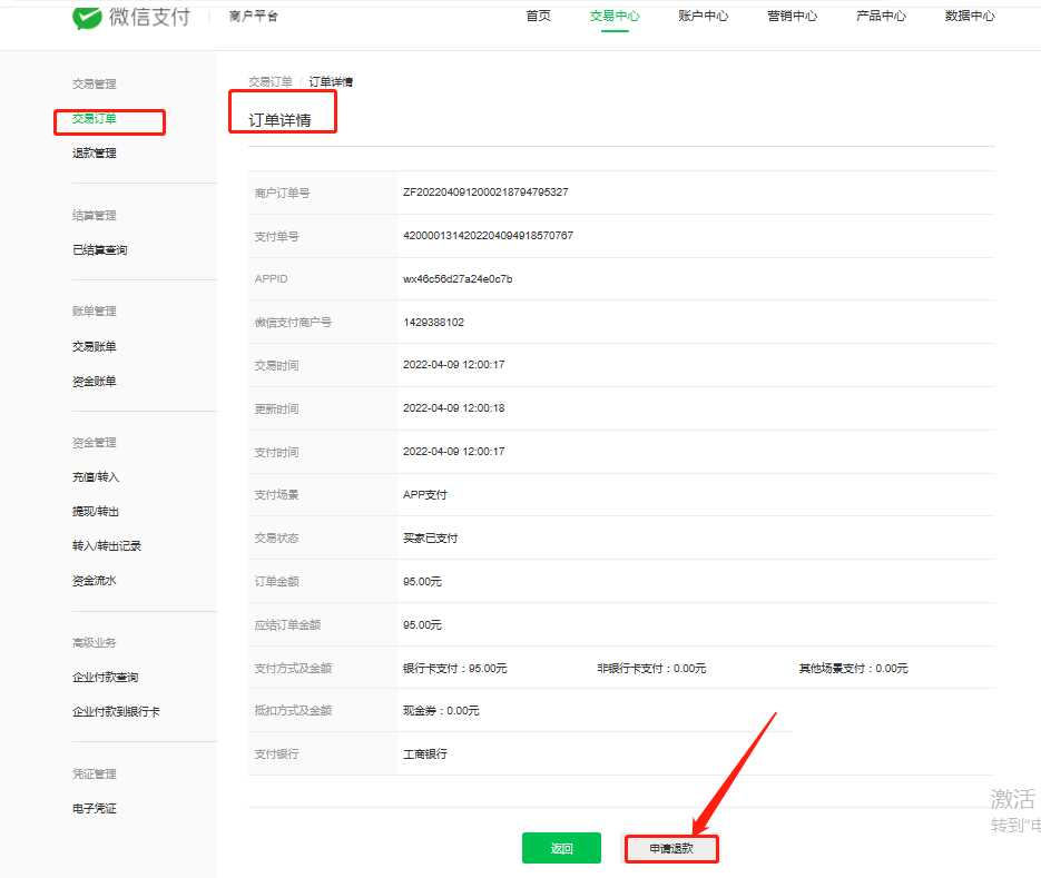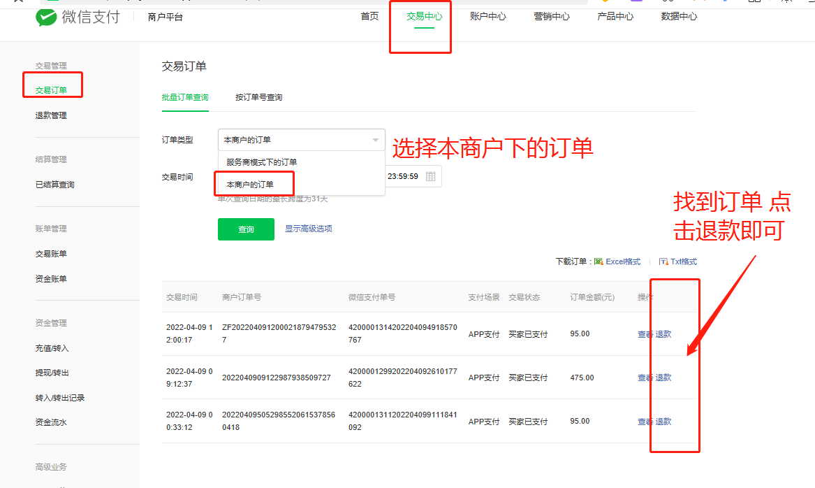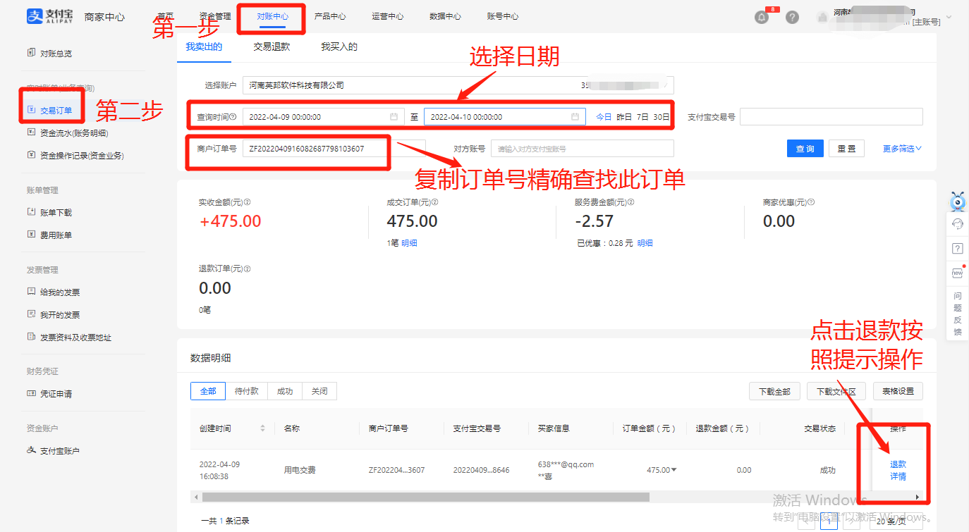 # 客户通过支付宝付款就登录支付宝找到订单,原路退还