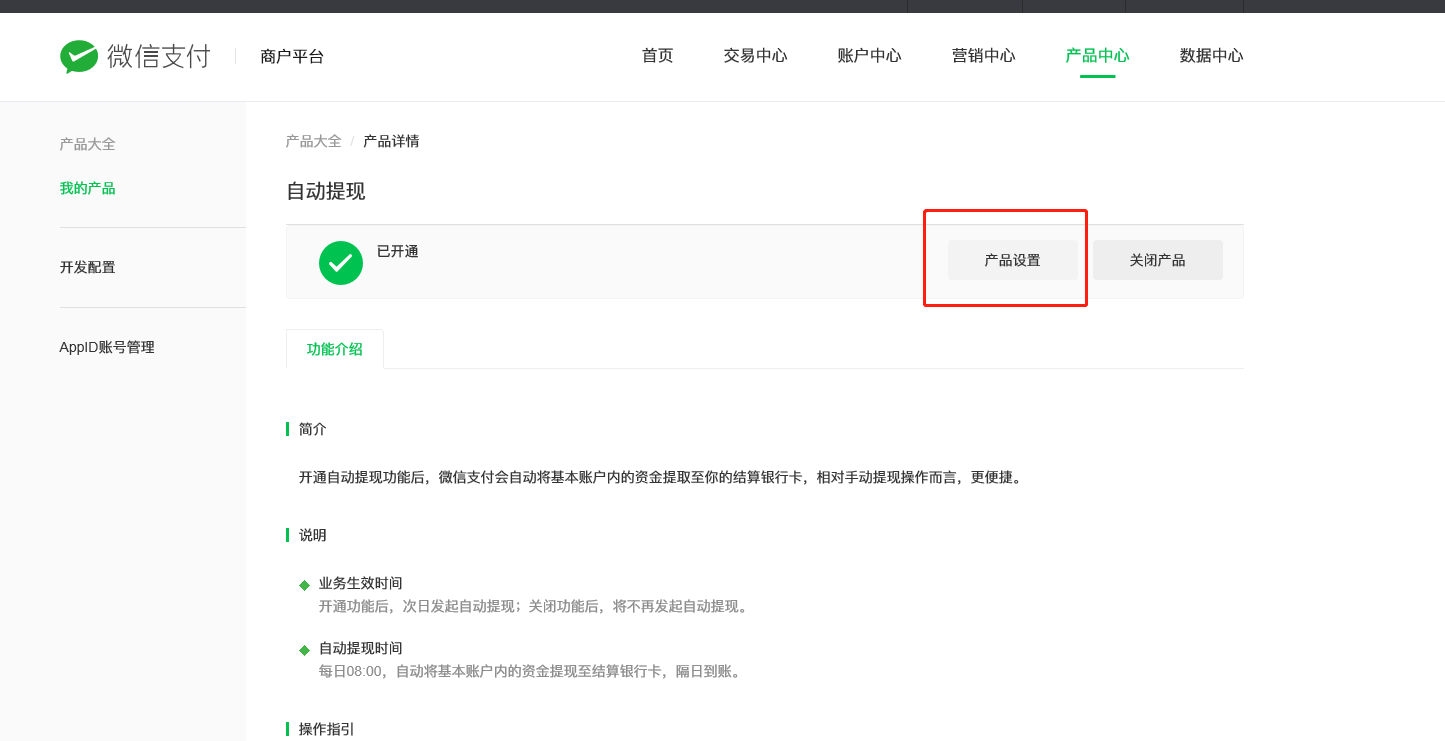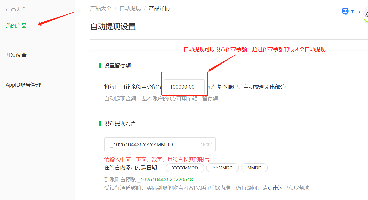## 如果微信平台的钱默认的是自动提现,可以设置账户预留一部分余额 超出部分自动提现,要不然平台一直没有余额,会导致退款失败。