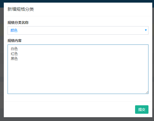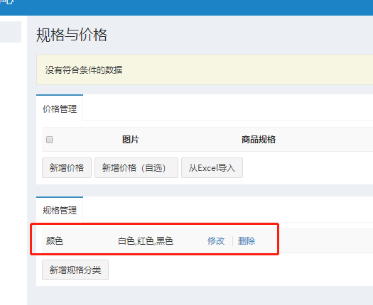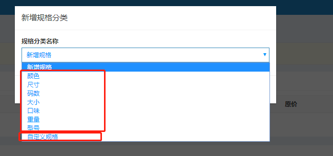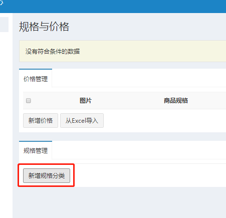 (2)商品有多个规格,首先建立规格,点击新增规格分类