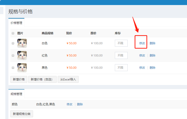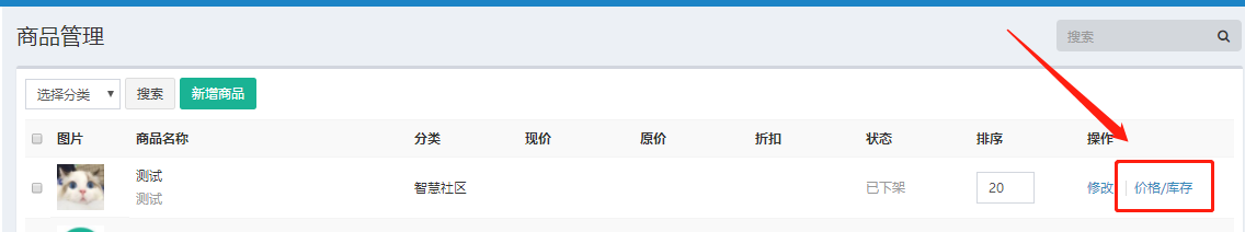 点击商品后面 **价格/库存**