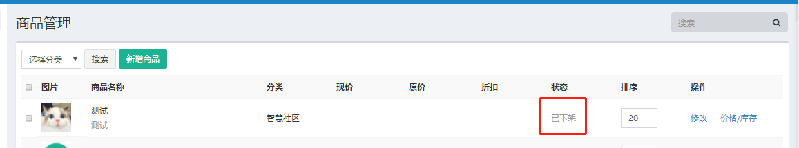 提交之后,刚新增的商品由于没有商品价格,所以是 下架 状态