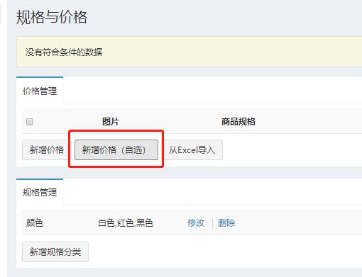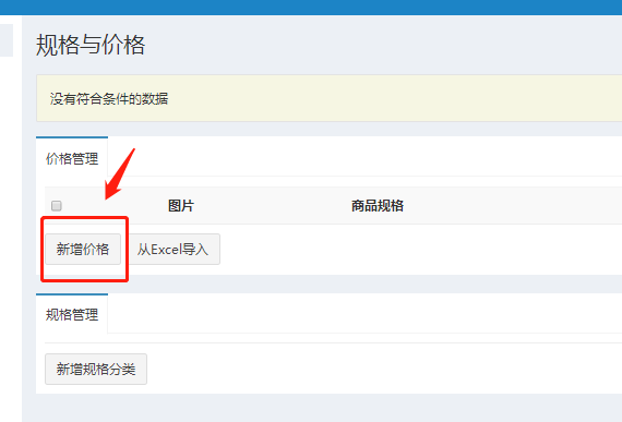 (1)如果商品只有一个规格,直接点击“新增价格”