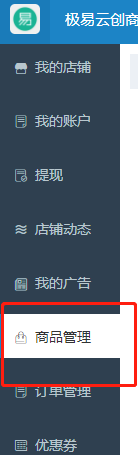 首先在 **商家后台** 点击 **商品管理**