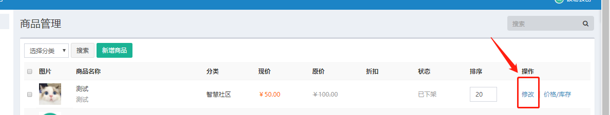 新增好价格之后,需要注意,商品这个时候还是 下架 状态,需要点击商品的后面的 修改,把 上架 勾选然后提交一下,这样商品就能在商圈里面显示了