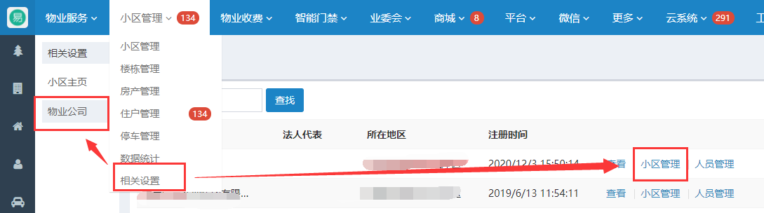 小区管理——相关设置——物业公司——小区管理——新增小区