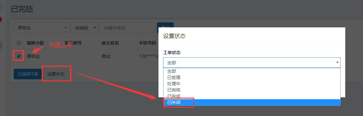 勾选需要删除的功能,点击下方已关闭,关闭的工单在30天后会自动删除