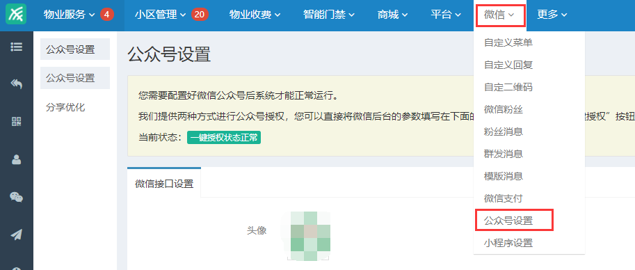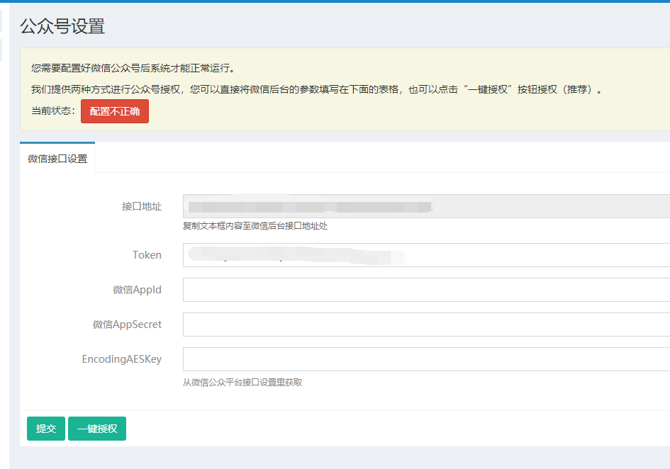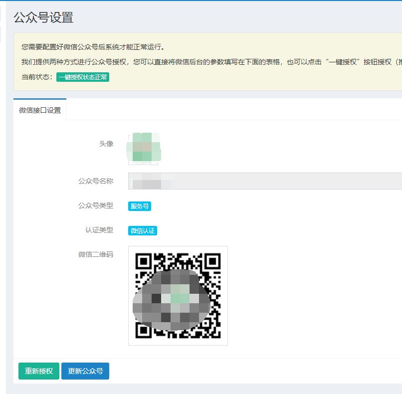 以下图片就是没有授权,可以点击下面的“一键授权”授权公众号(需要公众号管理员扫码)