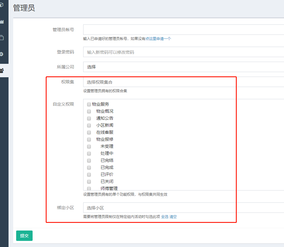- 给物业公司设置管理员客服