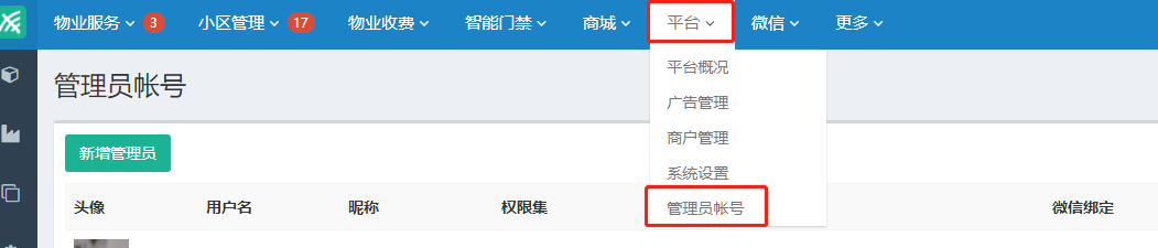 平台——管理员账号设置,可以直接添加账号,给相应的权限就可以