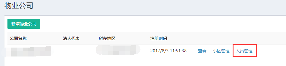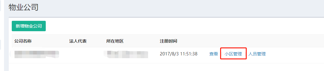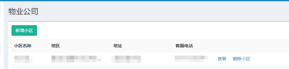 <br>建立好物业公司后,可以看到 查看、小区管理、人员管理这几个功能
