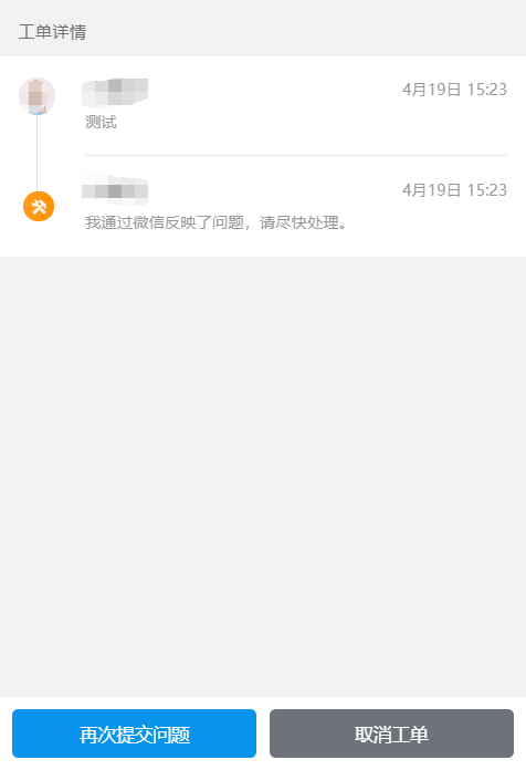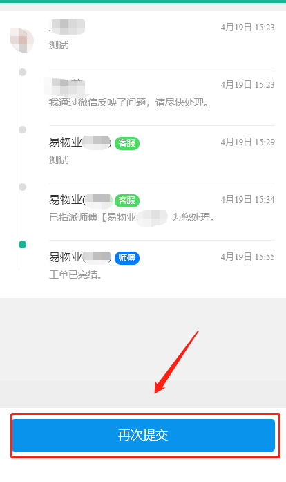 如完结工单之后还有问题,可点击工单下面的“再次提交”