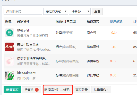 商家关注二维码:商家扫码后,在微信公众号里登录