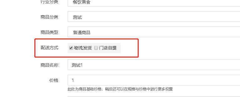 普通商品选择之后,需要选择物流发货、门店自提或者两种都选择