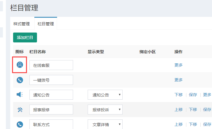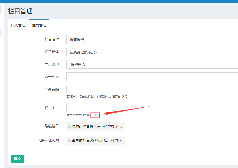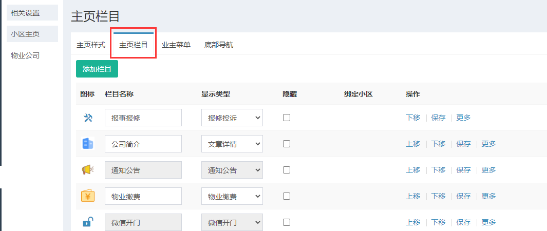 栏目指在小区主页里面的栏目