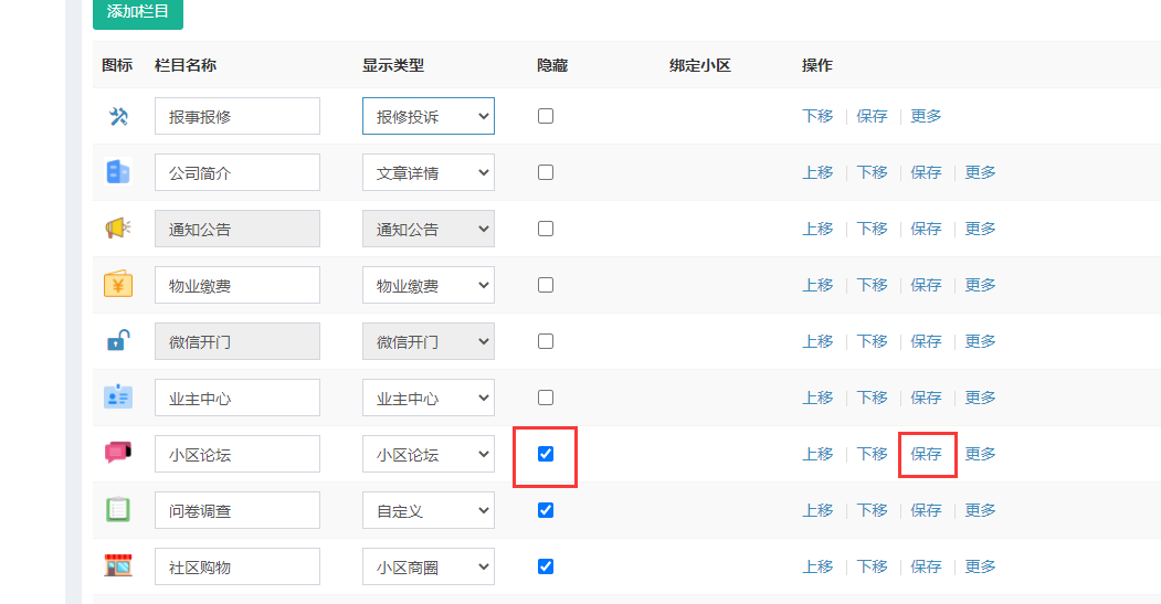 1、小区管理——小区主页——栏目管理——添加栏目